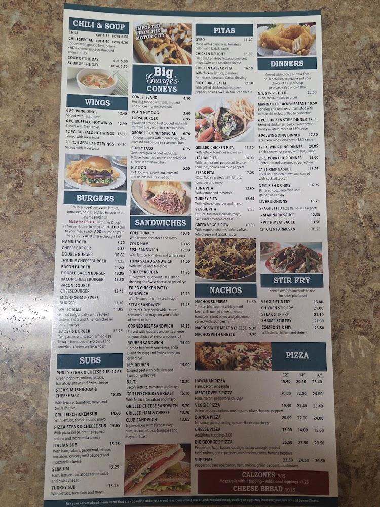 Discover Big George's Coney Island, a delightful American restaurant nestled at 7870 Lakeshore Rd, Fort Gratiot Township. Offering an inviting atmosphere with a touch of local charm, we specialize in hearty breakfasts and classic diner fare, including our renowned Coney Island hot dogs. Enjoy quick and friendly service whether dining in, taking out, or having your meal delivered. Our menu features small plates perfect for sharing, alongside a well-stocked bar. With accessible facilities and parking, it's the ideal spot for families, tourists, and solo diners alike. Join us for a memorable meal in a relaxed setting!